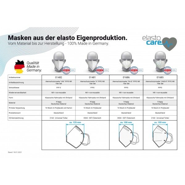 Gemäß Verordnung (EU) 2016/425 und der europäischen Norm EN 149:2001 + A1:2009