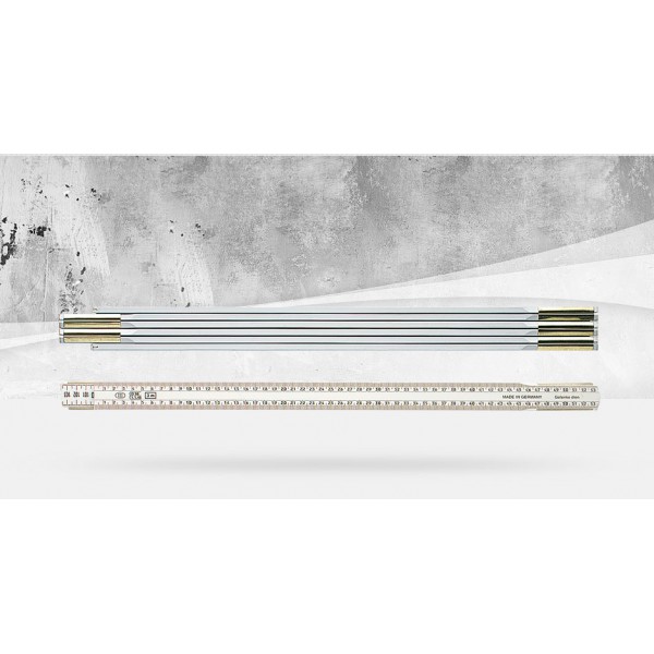 Holzgliedermaßstab in 3 m Länge, Gliederstärke 6,5 mm, Gliederhöhe 30 mm, Gliederlänge 50 cm. Besonders robuste Ausführung, verdeckte Nieten, Vorder- und Rückseite mit mm-Teilung entgegenlaufend beziffert